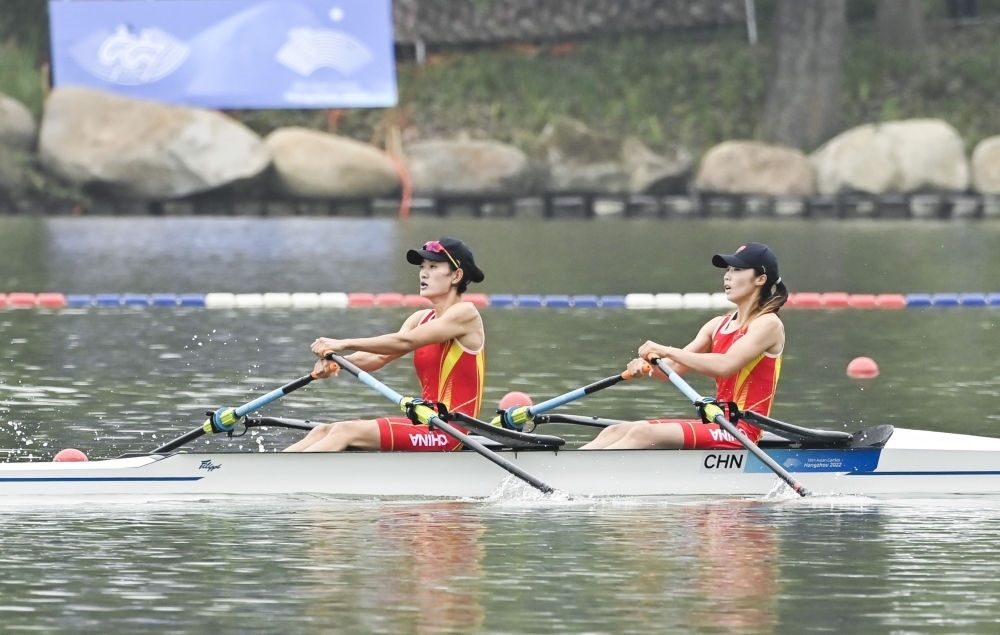 江波浩渺,助威聲、掌聲雷動(dòng)。9月24日上午,在杭州富陽(yáng)水上運(yùn)動(dòng)中心舉行的賽艇女子輕量級(jí)雙人雙槳比賽,中國(guó)隊(duì)選手鄒佳琪/邱秀萍獲得冠軍,這是杭州亞運(yùn)會(huì)首枚金牌。