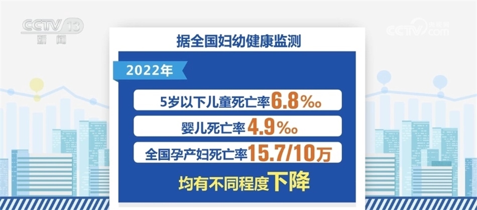 在婦幼健康方面,2022年我國(guó)孕產(chǎn)婦產(chǎn)前檢查率97.9%,產(chǎn)后訪視率96.5%。與上年比較,產(chǎn)前檢查率和產(chǎn)后訪視率均有提高。2022年全國(guó)住院分娩率為99.94%,基本實(shí)現(xiàn)全部住院分娩。據(jù)全國(guó)婦幼健康監(jiān)測(cè),2022年,我國(guó)5歲以下兒童死亡率6.8‰,嬰兒死亡率4.9‰,全國(guó)孕產(chǎn)婦死亡率為15.7/10萬(wàn),均有不同程度下降。