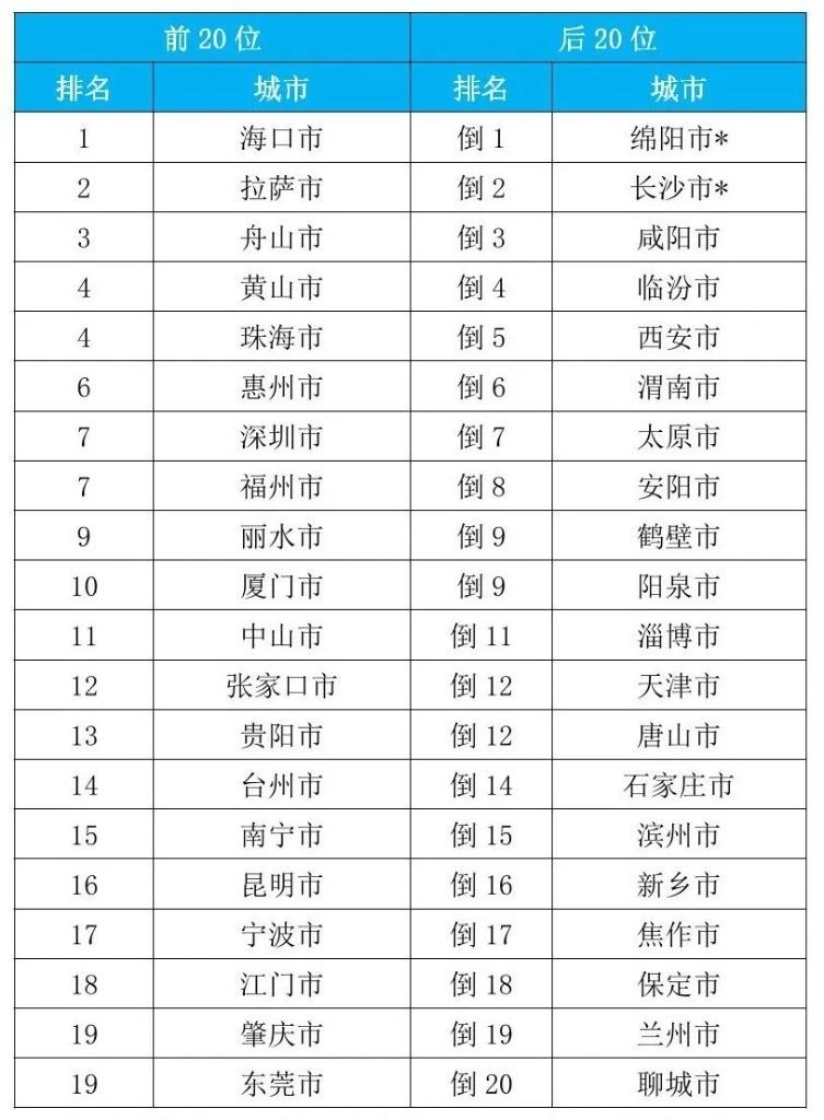 從重點城市排名看,1至9月,168個重點城市中,空氣質(zhì)量排名前20位城市依次是海口、拉薩和舟山等城市(從第1名至并列第19名);空氣質(zhì)量排名后20位城市依次是綿陽、長沙和咸陽等城市(從倒數(shù)第1名至倒數(shù)第20名)。據(jù)了解,綿陽市的一個監(jiān)測站點4月和5月、長沙市的一個監(jiān)測站點6月受到嚴重人為干擾,生態(tài)環(huán)境部對所在城市當月六項污染物濃度進行了最大值替代處理。(記者高敬)