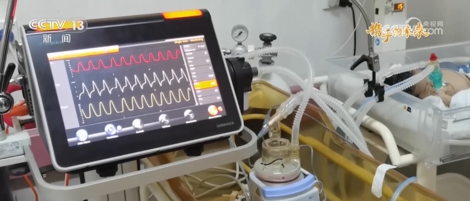 這是一臺特殊的呼吸機。呼吸機主機是從當?shù)蒯t(yī)院庫房找到的,主要用于急救車危重癥轉運,但一直沒有找到配套的新生兒呼吸管路和濕化器。不久前,中國的醫(yī)院通過海運寄來了合適的呼吸管路和濕化器,經(jīng)過調(diào)試后,終于組裝了一臺可以正常運行的新生兒呼吸機。