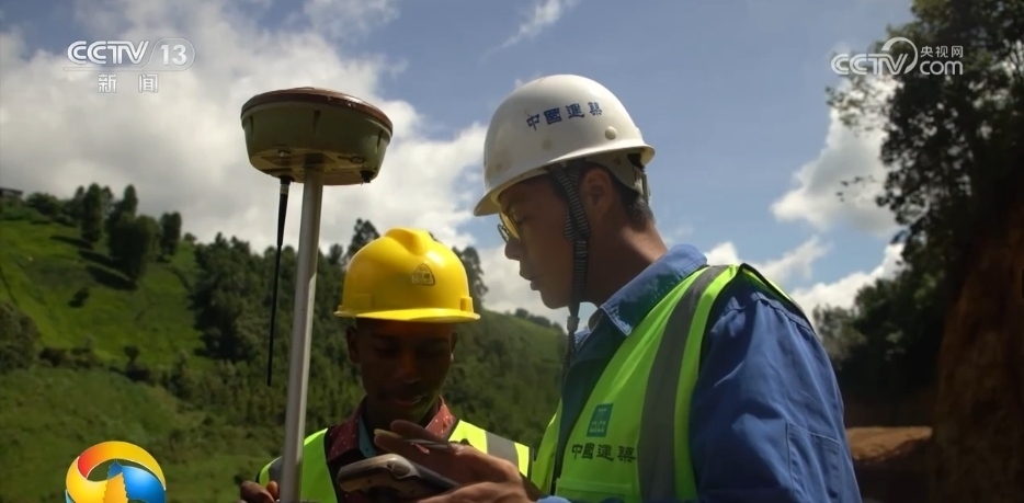 這里是肯尼亞南部高原上的錫卡鎮(zhèn)基戈羅村,施工團隊正在鋪設供水管線,將壩區(qū)的水引入內(nèi)羅畢城區(qū),解決首都近300萬人的用水問題。正在進行測量工作的中國工程師叫于春雨,旁邊的肯尼亞小伙子是他的徒弟叫王約翰。