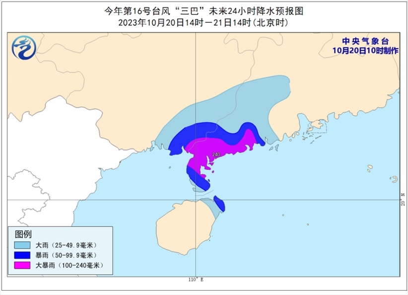 降水預(yù)報(bào):20日14時(shí)至21日14時(shí),華南南部等地部分地區(qū)有大到暴雨,其中,廣西東南部沿海、廣東西南部等地部分地區(qū)有大暴雨(100-240毫米)。上述部分地區(qū)伴有短時(shí)強(qiáng)降水(最大小時(shí)降雨量20-50毫米,局地可超過80毫米),局地有雷暴大風(fēng)等強(qiáng)對流天氣。