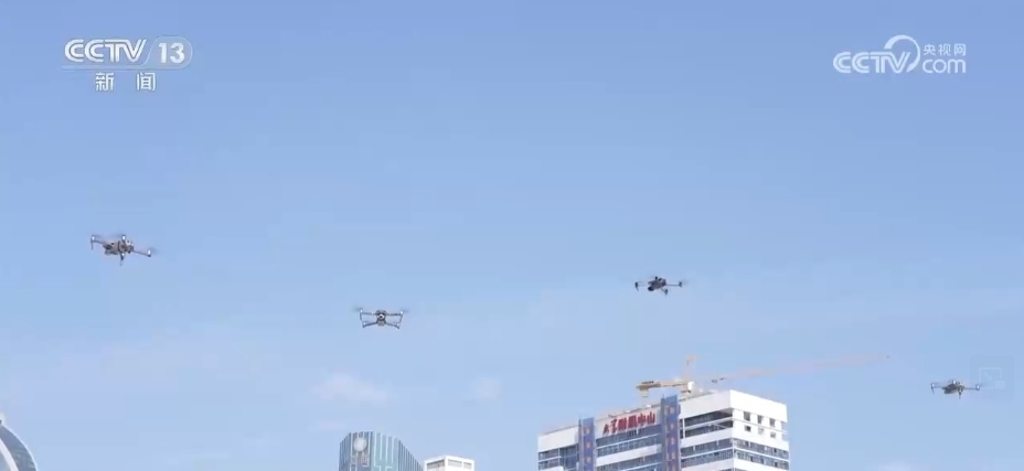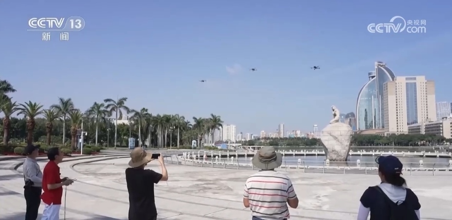 在廈門的白鷺洲上,四架無人機(jī)在空中列隊一字排開。
