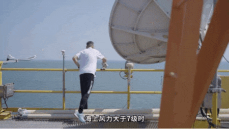 貓著腰、頂著強風(fēng)登上最高處進行操作