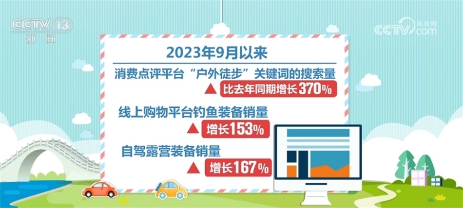 據(jù)統(tǒng)計(jì),今年九月以來(lái),消費(fèi)點(diǎn)評(píng)平臺(tái)“戶外徒步”關(guān)鍵詞的搜索量比去年同期增長(zhǎng)了370%,線上購(gòu)物平臺(tái)釣魚裝備銷量增長(zhǎng)153%,自駕露營(yíng)裝備銷量增長(zhǎng)了167%。隨著“戶外+”的新模式、新業(yè)態(tài)大量涌現(xiàn),消費(fèi)產(chǎn)品也日趨多樣化,戶外運(yùn)動(dòng)對(duì)體育產(chǎn)業(yè)的帶動(dòng)作用更加凸顯。