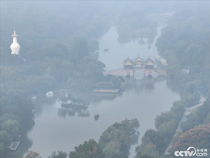2023年10月27日, 江蘇省揚(yáng)州市出現(xiàn)大霧天氣,瘦西湖風(fēng)景區(qū)在霧中若隱若現(xiàn)、如夢(mèng)似幻,宛若一幅水墨畫(huà)。