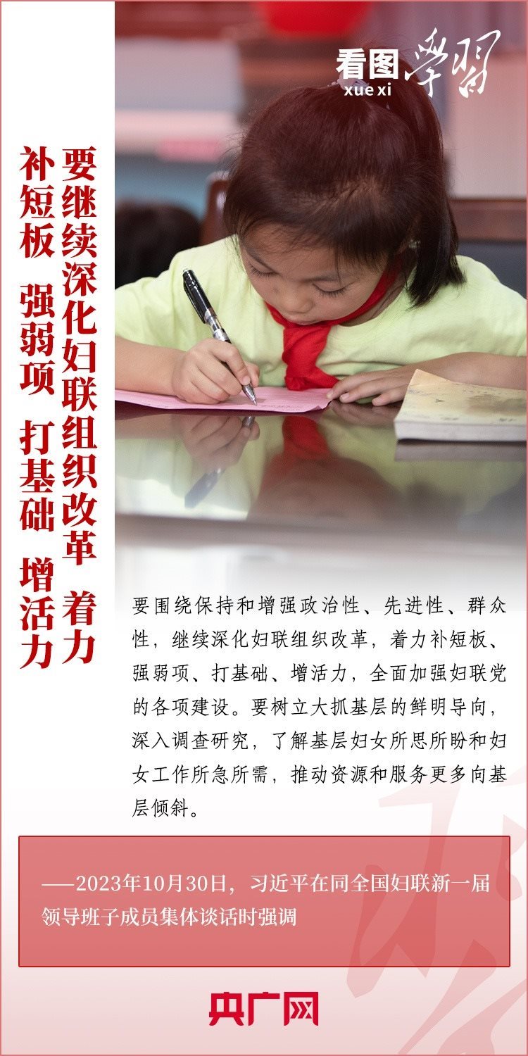 10月30日下午,習(xí)近平總書記同全國(guó)婦聯(lián)新一屆領(lǐng)導(dǎo)班子成員集體談話并發(fā)表重要講話??倳洀?qiáng)調(diào),要堅(jiān)定不移走中國(guó)特色社會(huì)主義婦女發(fā)展道路,激勵(lì)廣大婦女自尊自信、自立自強(qiáng),奮進(jìn)新征程、建功新時(shí)代,為中國(guó)式現(xiàn)代化建設(shè)貢獻(xiàn)巾幗智慧和力量。一起來(lái)學(xué)習(xí)!