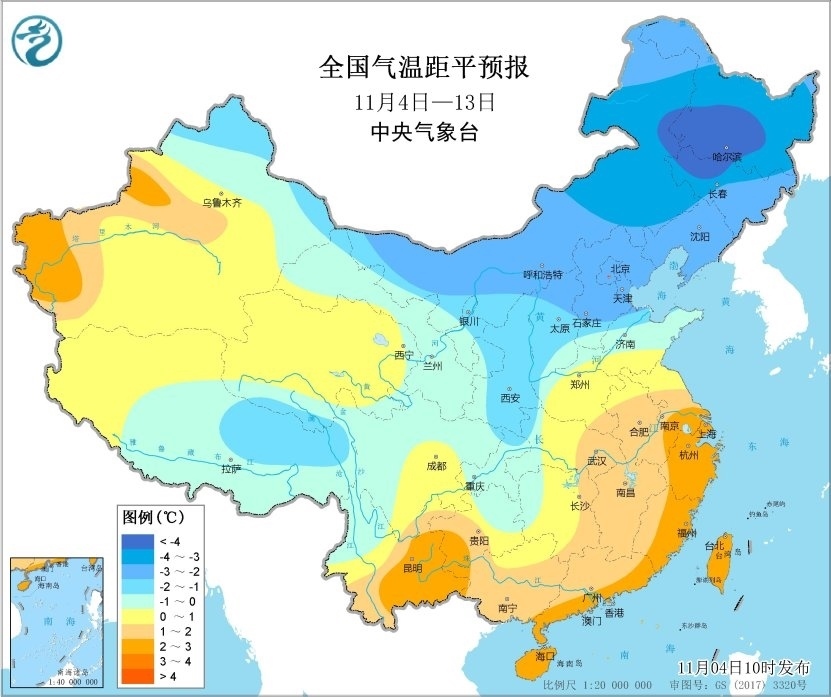未來10天(11月4-13日),東北大部地區(qū)累計(jì)降水量有10~20毫米,東部部分地區(qū)有30~60毫米;江淮、江南、華南西部和北部等地累計(jì)降水量有20~60毫米,局地超過90毫米;上述大部地區(qū)累計(jì)降水量較常年同期偏多5成至1倍。