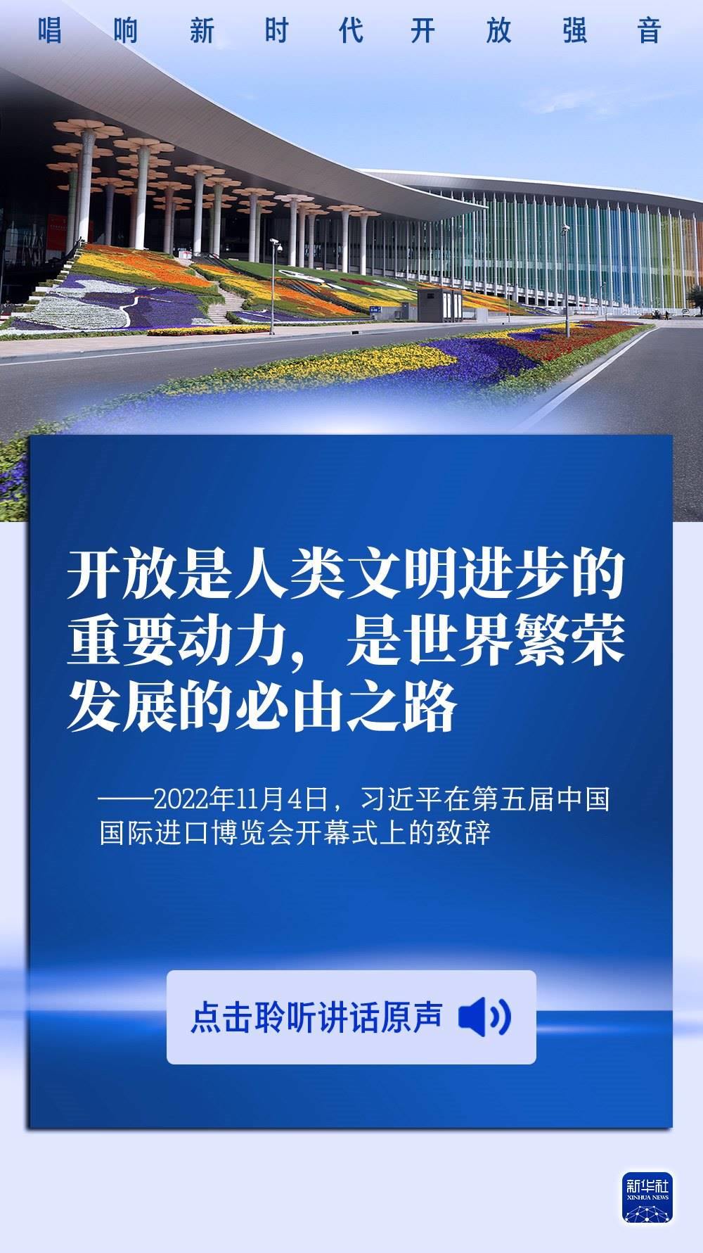 開放是當(dāng)代中國的鮮明標(biāo)識(shí)。習(xí)近平主席說,舉辦中國國際進(jìn)口博覽會(huì),是中國著眼于推動(dòng)新一輪高水平對(duì)外開放作出的重大決策,是中國主動(dòng)向世界開放市場的重大舉措。習(xí)主席在歷屆進(jìn)博會(huì)上的重要講話,發(fā)出開放合作的時(shí)代強(qiáng)音,為建設(shè)開放型世界經(jīng)濟(jì)注入正能量。