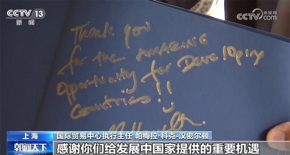 國際貿(mào)易中心執(zhí)行主任 帕梅拉·科克-漢密爾頓:進博會最重要的是,它是一個無與倫比的進口平臺。一個國家邀請人們來共享進口機遇,這是創(chuàng)新之舉。對我們來說,這是雙贏(的機遇)。它為(各國企業(yè))進入一個擁有巨大市場的國家提供了平臺,也為(各國及企業(yè))建立聯(lián)系網(wǎng)絡,建立伙伴關系提供了重要的平臺,使各國能夠成為供應鏈的一部分,更好地參與到全球經(jīng)濟合作之中。