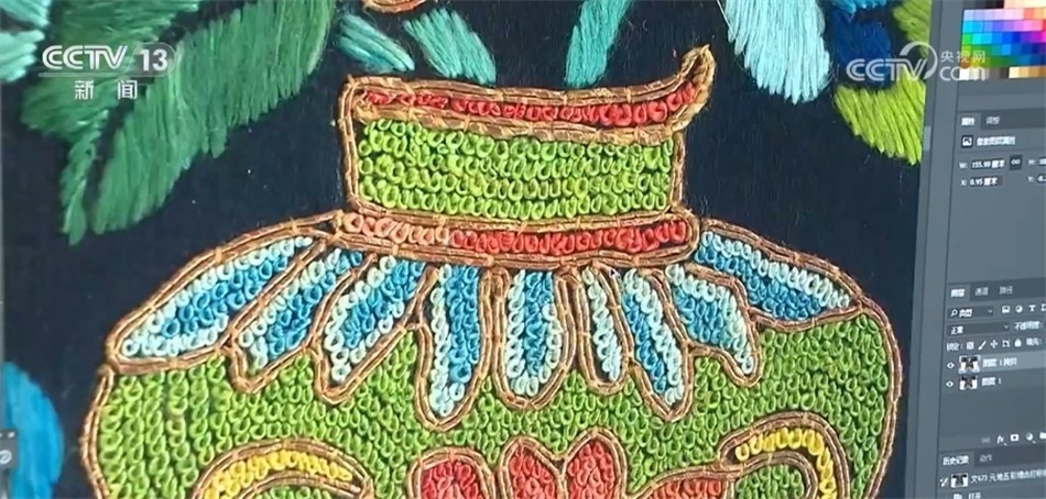經由高清設備采集、原樣分析、線圖提取,絲綢紋樣的圖案、色彩、針法、層級都在電腦屏幕上一覽無遺。