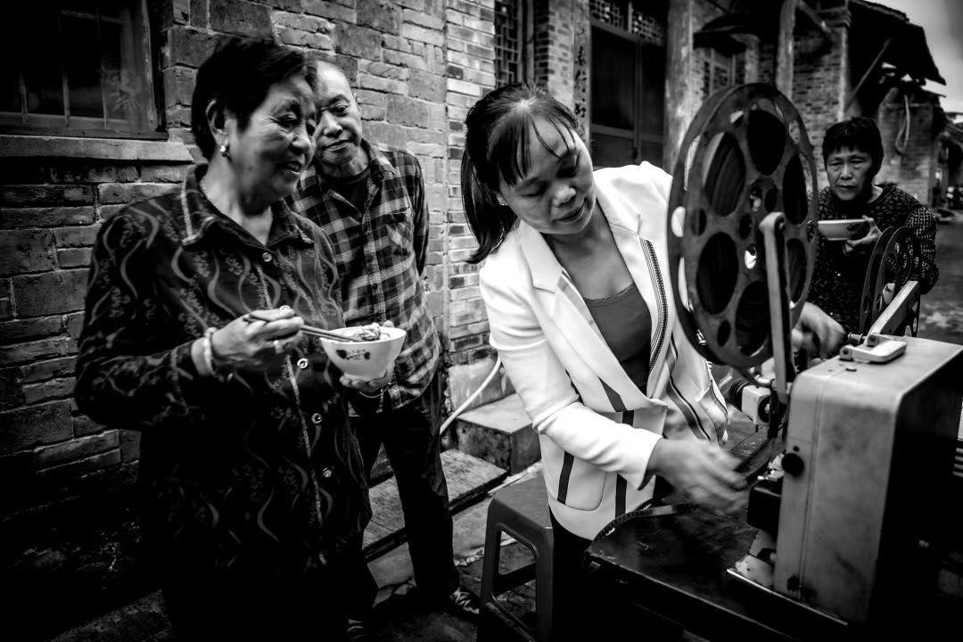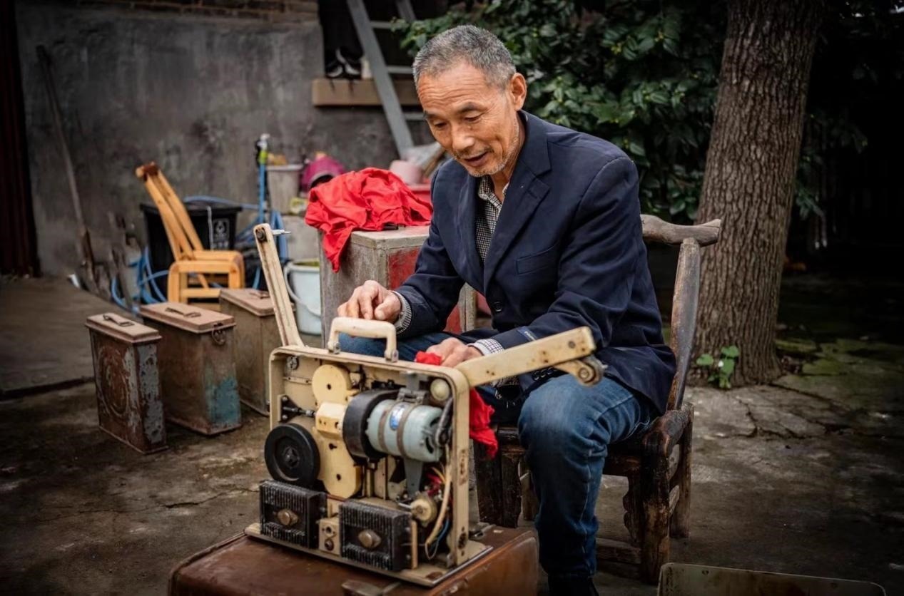 1983年,鄉(xiāng)里成立了電影放映隊(duì),曹毅成了隊(duì)長,還參加了電影培訓(xùn)班,扎扎實(shí)實(shí)地學(xué)了放映技術(shù)、電工等好多課程,成了專業(yè)的放映員。那時片源少,一張片子各個鄉(xiāng)排期輪流放映,讓曹毅最開心的事,就是坐上幾個小時的公交車去縣里拿膠片。有時揣著膠片回來的路上就忍不住想樂,哪回放新電影都像打仗一樣,人山人海,得防著別碰壞了放映機(jī),還得留心會有哪個村連夜來搶放映機(jī)。“總有一萬人,銀幕前后都是人,背面都有人看。在稻田里面把那稻子割完了以后,電影就在稻場里面放,不然地方不夠大?!笨諝庵酗h著稻谷的香味,不少人會盤腿坐在地上,扎扎實(shí)實(shí)看完一部電影。