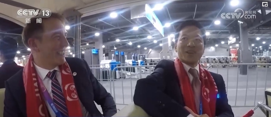 巡館開(kāi)始已經(jīng)接近8時(shí),在觀光車上,記者又遇到了剛剛見(jiàn)到的胡凱誠(chéng),和他同一個(gè)車的是百事公司的全球執(zhí)行副總裁斯蒂芬·基霍。這是百事公司第一次亮相進(jìn)博會(huì),原本以為他會(huì)對(duì)場(chǎng)館相對(duì)陌生,然而到了第一站食品館,斯蒂芬一下子來(lái)了精神。