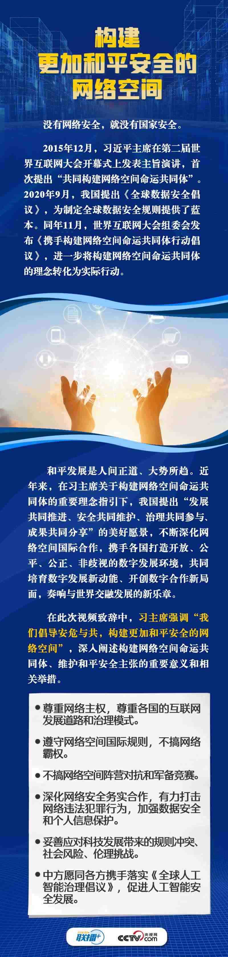 面對(duì)新的時(shí)代課題,習(xí)主席在此次視頻致辭中倡導(dǎo)構(gòu)建更加普惠繁榮、更加和平安全、更加平等包容的網(wǎng)絡(luò)空間。這三個(gè)“網(wǎng)絡(luò)空間”具體內(nèi)容是什么?構(gòu)建網(wǎng)絡(luò)“新空間”有什么具體措施?央視網(wǎng)《聯(lián)播+》與您一同學(xué)習(xí)。