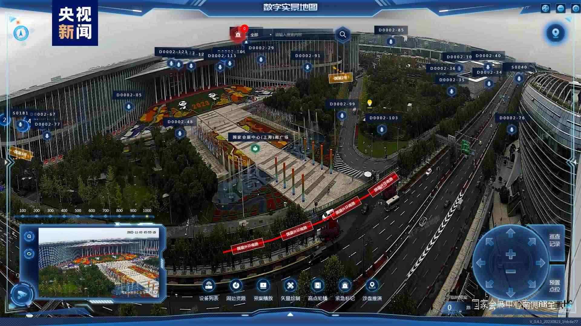 為強(qiáng)化精準(zhǔn)指揮調(diào)度,消防部門專門制作了國家會(huì)展中心的三維模型,將本屆參展的1888個(gè)展位全部進(jìn)行了數(shù)字化標(biāo)識(shí),在指揮平臺(tái)主頁面可實(shí)現(xiàn)目標(biāo)展位一鍵搜索和快速定位。以6.1號(hào)館為試點(diǎn),通過激光雷達(dá)和可見光融合傳感器進(jìn)行快速掃描,建立展臺(tái)的三維精模,配置安保模型算法,將現(xiàn)場監(jiān)控?cái)z像頭傳回的二維畫面與三維模型匹配,實(shí)現(xiàn)虛實(shí)場景交互融合。同時(shí)通過采集巡館人員面部、著裝等特征信息,利用AI算法,實(shí)時(shí)在館內(nèi)人群中標(biāo)定巡館人員,進(jìn)行精準(zhǔn)定位。一旦發(fā)現(xiàn)異常狀況,指揮部值班人員能快速、精準(zhǔn)地向所有駐防人員提供最佳處置線路指引和最優(yōu)輔助決策。