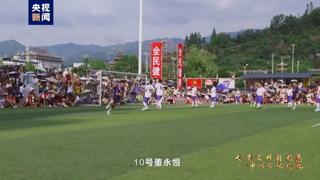 榕江縣,地處貴州省東南部,人口不足40萬。今年5月到7月期間,榕江縣和美鄉(xiāng)村足球超級聯(lián)賽一夜火遍全網(wǎng),被網(wǎng)友們親切地稱為“村超”。這個夏天,一場火爆的“村超”比賽能吸引五萬名現(xiàn)場觀眾,平均每場比賽超過5000萬人次在線圍觀,全網(wǎng)流量突破300億次。