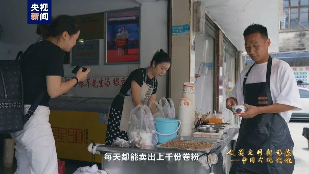 如今,董永恒的店里每天都能賣出上千份卷粉。卷粉掙錢、踢球圖樂,口袋鼓起來、體質(zhì)強起來、日子美起來。