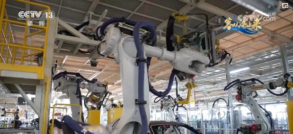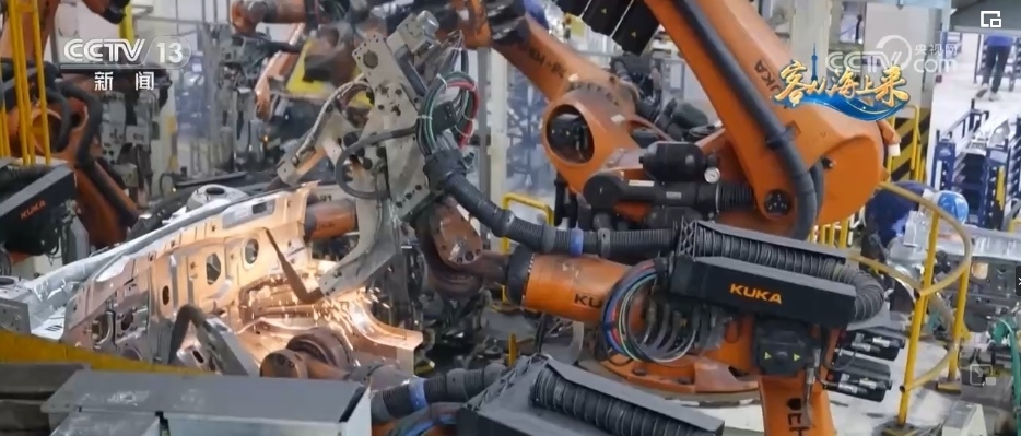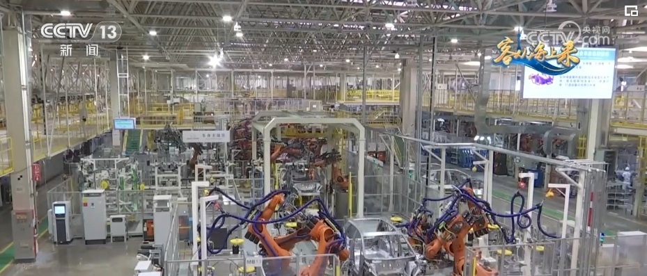 總臺(tái)央視記者 高媛:平均每1分鐘就會(huì)下線一輛車,在這個(gè)智慧工廠里,有1000多臺(tái)柔性機(jī)器人實(shí)現(xiàn)焊接100%自動(dòng)化,這樣的智能制造能力就是它高效的“密碼”。