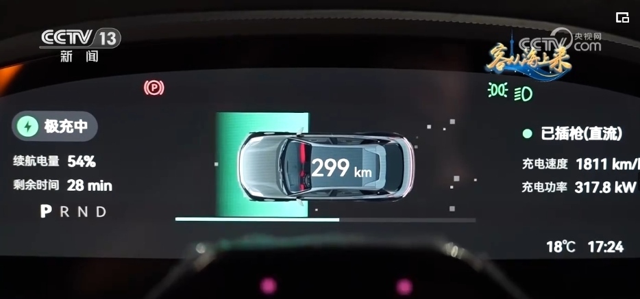 總臺(tái)央視記者 高媛:動(dòng)力電池被稱為新能源汽車的“心臟”,而15分鐘就是這輛車充70%的電所需要的時(shí)間,它的“秘訣”就是搭載了最新型號(hào)的電池。