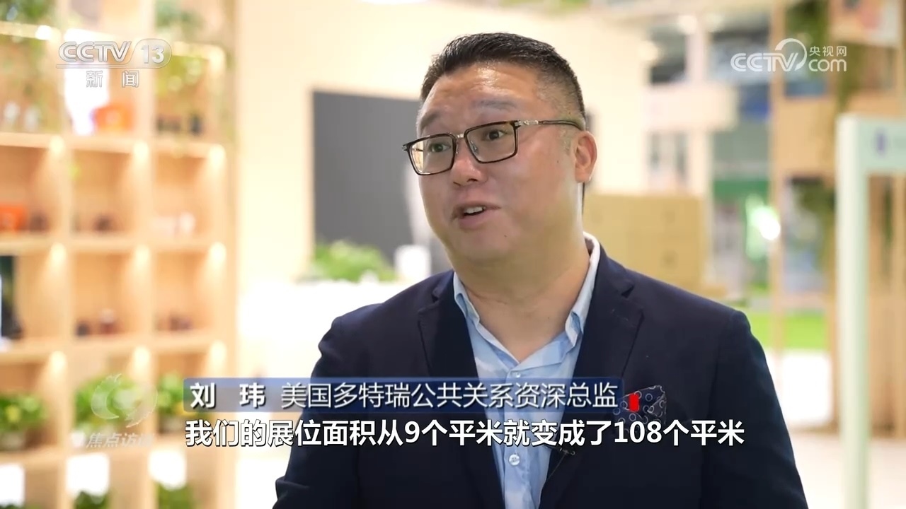 美國多特瑞公共關(guān)系資深總監(jiān)劉瑋:“因?yàn)橛辛说谝粚眠M(jìn)博會,給了公司非常大的信心,所以從第二屆開始,我們的展位面積從9平米變成了108平米,第三屆的時(shí)候我們又拓展到了150平米,直到現(xiàn)在我們的整個(gè)面積達(dá)到了200平米,所以面積的增長帶來了非常好的收益?!?/p>