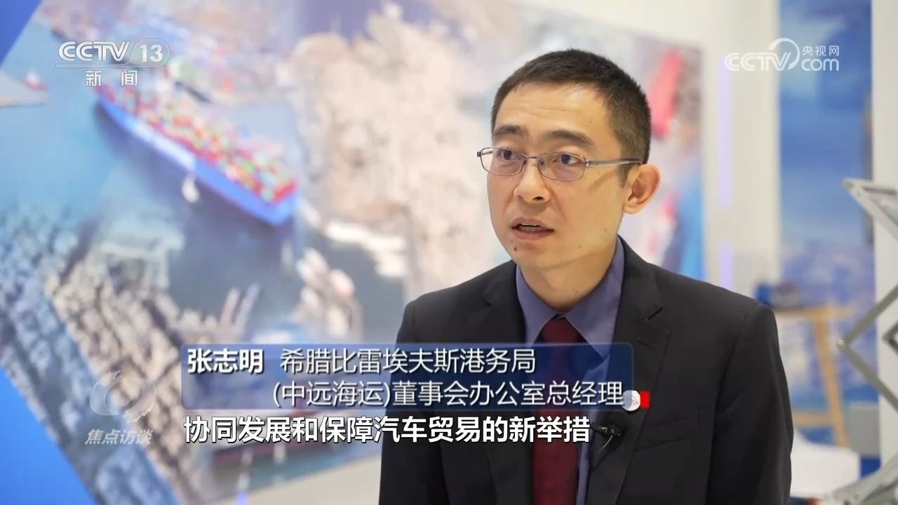 張志明:“第五屆進(jìn)博會上,比港與中遠(yuǎn)海運(yùn)集團(tuán)共同推出了協(xié)同發(fā)展和保障汽車貿(mào)易的新舉措。進(jìn)博會后,2022年11月,一艘多用途船停靠比港,卸下來的不是普通的貨物,而是用特制框架箱裝運(yùn)的中國汽車,這些汽車在比港卸下后,通過陸路和水路分撥到歐洲其他地方?!?/p>