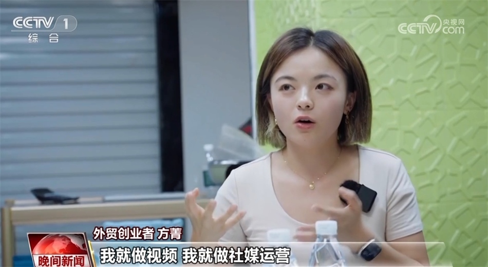 外貿(mào)創(chuàng)業(yè)者 方菁:我就做視頻,做社媒運(yùn)營(yíng)。我加入(姐姐)的時(shí)候,她每個(gè)月只發(fā)一個(gè)集裝箱,但是我們來(lái)了之后,一個(gè)月發(fā)七個(gè)集裝箱了。