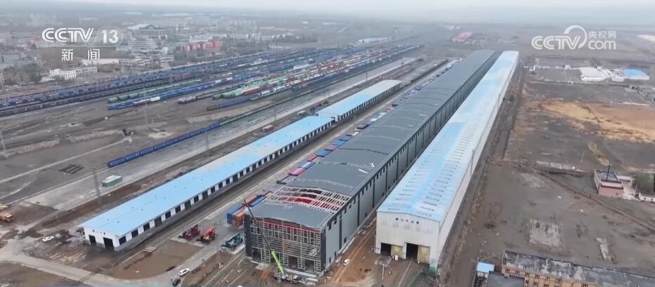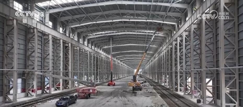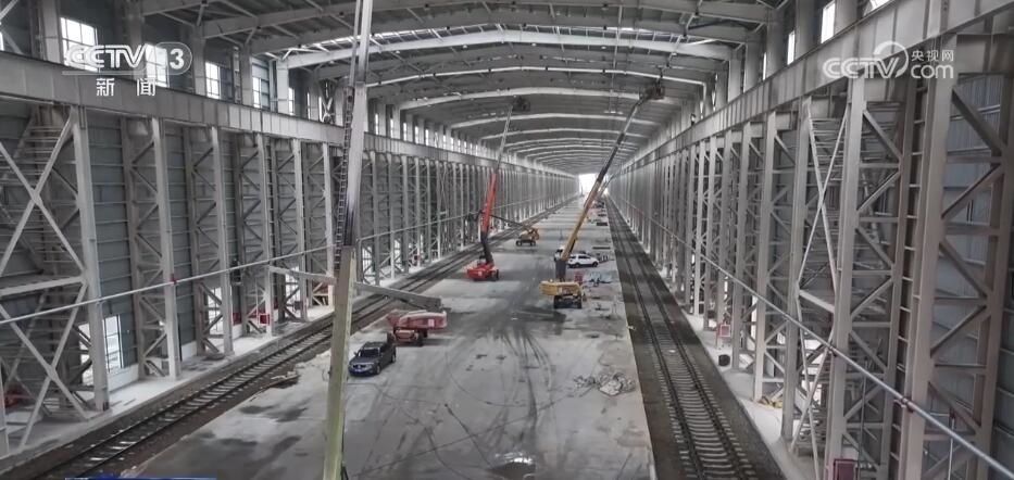 總臺記者 崔寧:在我的身后有一小一大、一舊一新兩座換裝庫,它們主要是對入境的中歐班列進(jìn)行換裝。小的這座看起來也比較舊,它建于2008年,到目前為止已經(jīng)投用了整整15年。隨著“一帶一路”倡議的不斷推進(jìn),現(xiàn)在經(jīng)阿拉山口口岸出入境的中歐班列數(shù)量已經(jīng)由最初月均3.5列增加到日均17列。所以,它的存在也已經(jīng)遠(yuǎn)遠(yuǎn)不能滿足現(xiàn)在發(fā)展的需求,也正因?yàn)槿绱?,在它的旁邊又新建了一座大的換裝庫,它建成投用之后將取而代之成為目前亞洲最大的室內(nèi)集裝箱換裝庫。