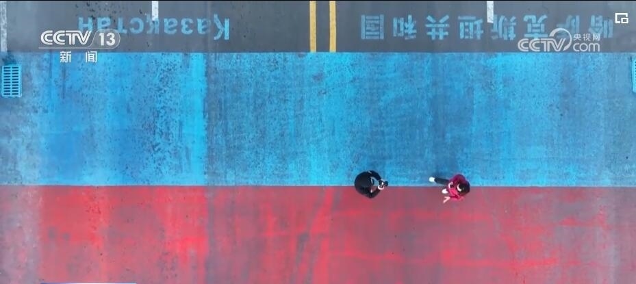 總臺記者 崔寧:看我的腳下,這邊是中國的土地,這邊是哈薩克斯坦的土地。人們在這里可以一腳踏兩國,自由地往來出入,不僅可以旅游購物、貿(mào)易洽談,還能享受免稅政策。