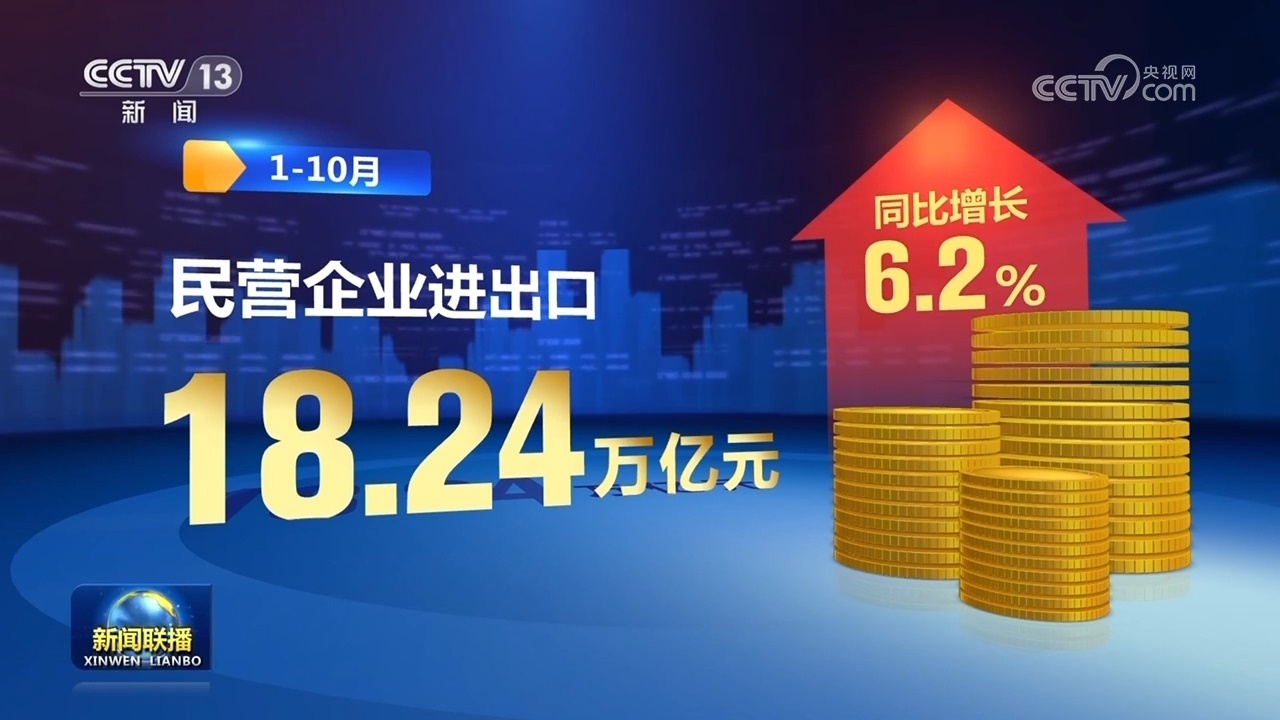 新動能帶動作用持續(xù)釋放,推動外貿領域積極因素累積增多。前三季度跨境電商進出口額達1.7萬億元,同比增長14.4%,保持較快增長。貿易結構優(yōu)化升級,1—10月,我國一般貿易進出口增長1.8%,占我國外貿總值的64.9%,比去年同期提升1.1個百分點。民營企業(yè)進出口18.24萬億元,同比增長6.2%,成為穩(wěn)外貿主力軍。