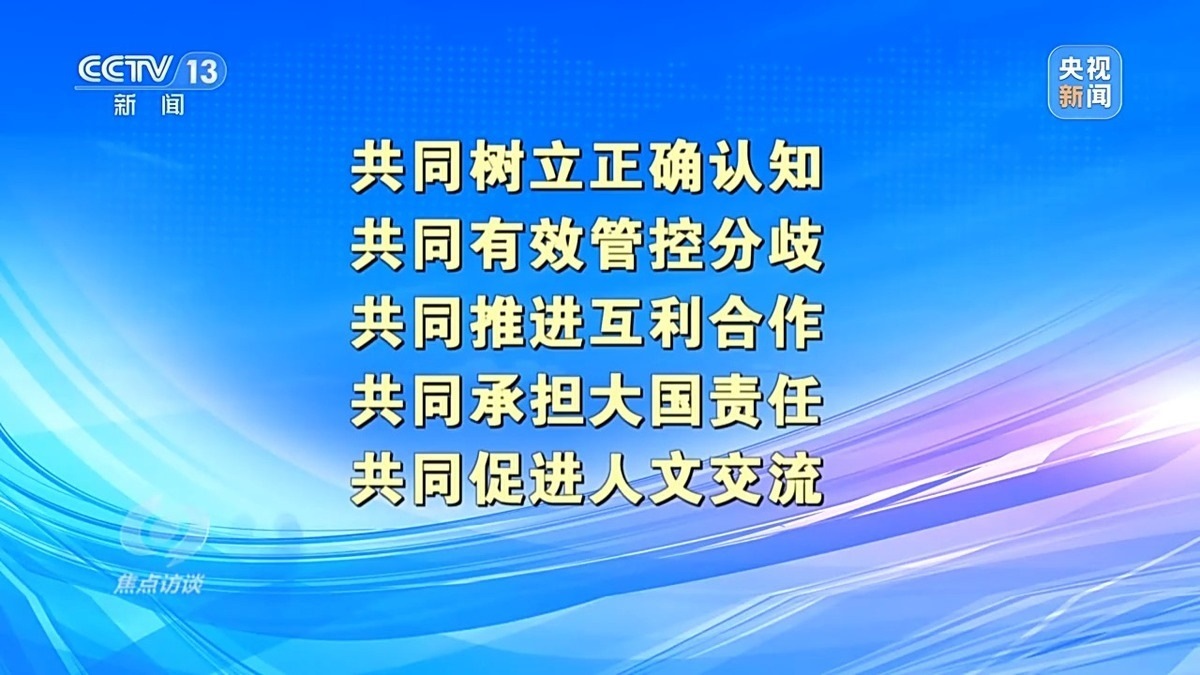 中國人民大學(xué)國際關(guān)系學(xué)院教授 刁大明:現(xiàn)在看舊金山這次會晤本身,中方非常清晰地從負(fù)責(zé)任大國角度出發(fā),從對歷史、對人民、對世界角度出發(fā),提出了一個中美兩國正確相處之道。“五個共同”是中國提出的一個正確相處之道,也是中國從負(fù)責(zé)任角度出發(fā),為穩(wěn)定中美關(guān)系,為更多增進(jìn)全球福祉提出中國方案。