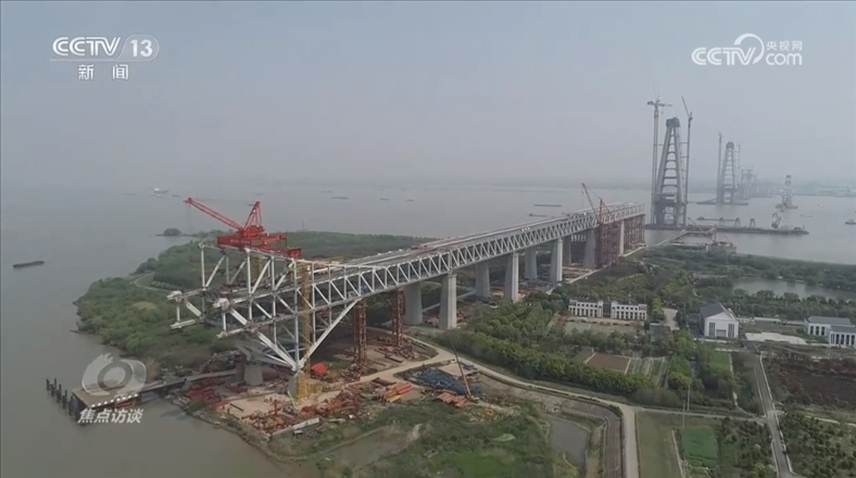 央視網(wǎng)消息(焦點(diǎn)訪談):近些年來,中國在多個(gè)領(lǐng)域創(chuàng)造了大量的世界之最。這一個(gè)個(gè)的 “世界首次”“世界第一”深刻地改變了中國,也令世界驚嘆。從今天起《焦點(diǎn)訪談》欄目推出“登攀”系列節(jié)目,我們來看一看中國奇跡誕生背后的故事?!胺晟介_路、遇水架橋”,這是中國基建人的日常,他們不斷突破,創(chuàng)造了一個(gè)個(gè)登頂世界之最的基建名場面。今天我們要講的是一座修建當(dāng)中的長江大橋——位于江蘇常州和泰州之間的常泰長江大橋,作為世界上在建的最大跨度的公鐵兩用斜拉橋,這座大橋在建設(shè)的過程當(dāng)中遇到了很多困難,也頻頻上演著突破和創(chuàng)新。