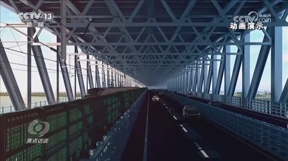 而說常泰長江大橋是個(gè)超級工程,不僅因?yàn)樗小翱缍茸畲蟆钡倪@個(gè)頭銜,更因?yàn)樗鼡碛卸喾N功能,在這座上下兩層的橋上,上層為六車道高速公路,下層為兩線鐵路和四車道普通公路,這也是長江上首座“三位一體”的跨江大橋。那么,多種功能的設(shè)計(jì)又是出于什么樣的考慮呢?