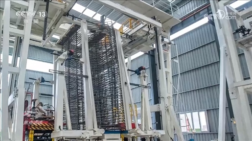 王輝:“通過手機(jī)掃描能夠數(shù)字化顯示鋼筋所有的生產(chǎn)信息,鋼筋智能生產(chǎn)的設(shè)備把原材料鋼筋做成單元件,通過這個(gè)設(shè)備的組裝形成了鋼筋片體。像這樣的片體5號塔要用3萬個(gè),大概分成了3200組,每一組鋼筋用的部位都不一樣,為了精準(zhǔn)識別它用在哪里,每一組要給它一個(gè)識別信息,做一個(gè)二維碼,通過手機(jī)掃描就可以知道它要用在哪個(gè)地方?!?/p>