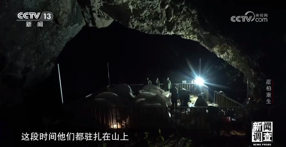 調(diào)查用的工具、保險(xiǎn)繩、干糧、帳篷,僅僅是這些必需品,他們的背包就有好幾十斤重。無人區(qū)里沒有路,沿途基本都是密集的樹林和雜草,隊(duì)員們只能用砍刀開路。有些崖壁是直接懸空的,根本沒有著力點(diǎn)。隊(duì)員們就從山林里找來廢棄的木頭,用鐵絲捆在一起,搭成木橋和圍欄。走了四個多小時,他們終于在一處懸崖發(fā)現(xiàn)了野生崖柏。他們手中的儀器叫做定位器,可以精確記錄崖柏生長地點(diǎn)的經(jīng)緯度和海拔,給科研提供更精確的信息。