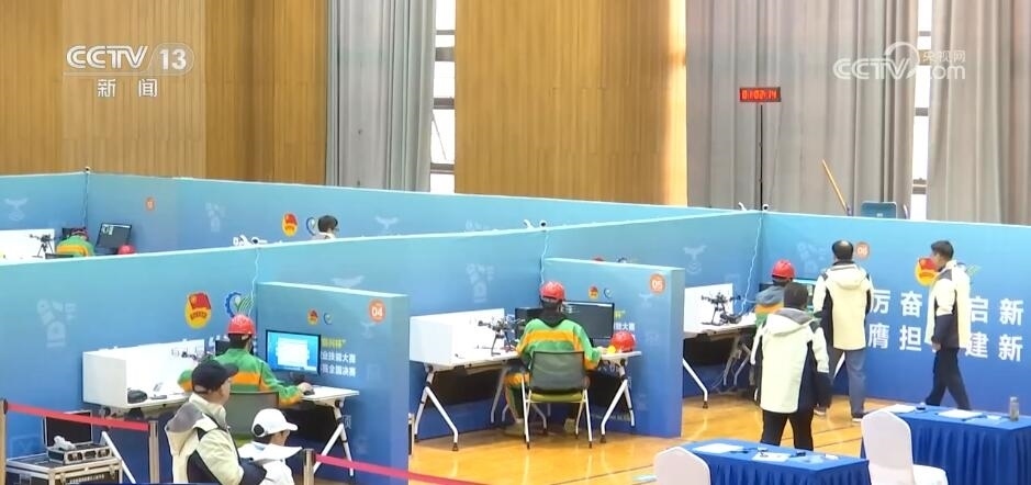 這是本屆“振興杯”大賽無(wú)人機(jī)駕駛員的考核現(xiàn)場(chǎng),選手們操控手中的搖桿,模擬在極端天氣場(chǎng)景下,準(zhǔn)確投放物資,展開救援。他們要在兩個(gè)小時(shí)的比賽時(shí)間里,完成無(wú)人機(jī)部件的安裝調(diào)試、數(shù)據(jù)采集、物流運(yùn)輸?shù)榷鄠€(gè)項(xiàng)目操作。