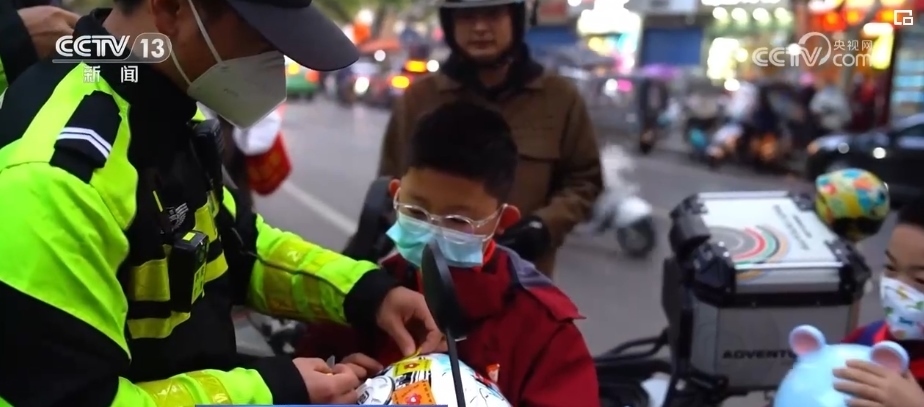 在一些重點治理區(qū)域,交警還聯(lián)合學(xué)校啟動了“送你一朵小紅花”護學(xué)活動,將使用反光材料制作的閃閃發(fā)光的小太陽和小紅花送給按規(guī)定佩戴頭盔的家長和學(xué)生。對頭盔佩戴率較高的班級,學(xué)校會頒發(fā)交通安全示范班級“流動紅旗”,強化學(xué)生“遵守交通法規(guī),安全文明出行”的交通安全意識,以“小手拉大手”的形式對家長進行“反哺教育”。