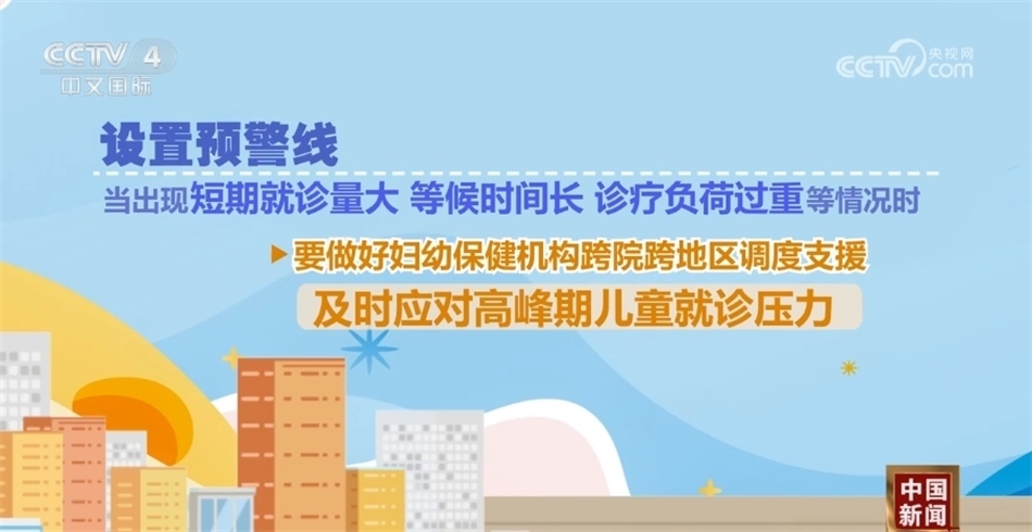 設置預警線,當出現(xiàn)短期就診量大、等候時間長、診療負荷過重等情況時,要做好婦幼保健機構跨院跨地區(qū)調度支援,及時應對高峰期兒童就診壓力。