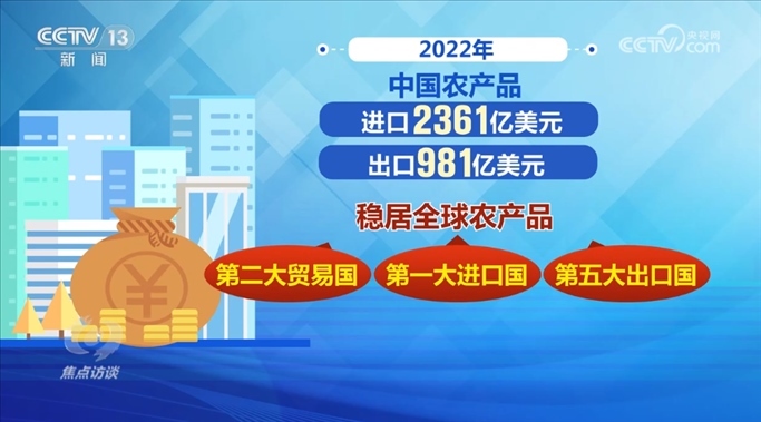 數(shù)據(jù)顯示,2001年至2022年,中國農(nóng)產(chǎn)品貿(mào)易額年均增長12.6%,農(nóng)產(chǎn)品出口額年均增長9.1%,進(jìn)口額年均增長15.4%。2022年,中國農(nóng)產(chǎn)品進(jìn)口2361億美元,出口981億美元,穩(wěn)居全球農(nóng)產(chǎn)品第二大貿(mào)易國、第一大進(jìn)口國、第五大出口國。糧食安全的穩(wěn)定性,離不開農(nóng)業(yè)供應(yīng)鏈的安全可控。