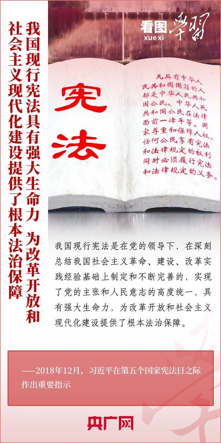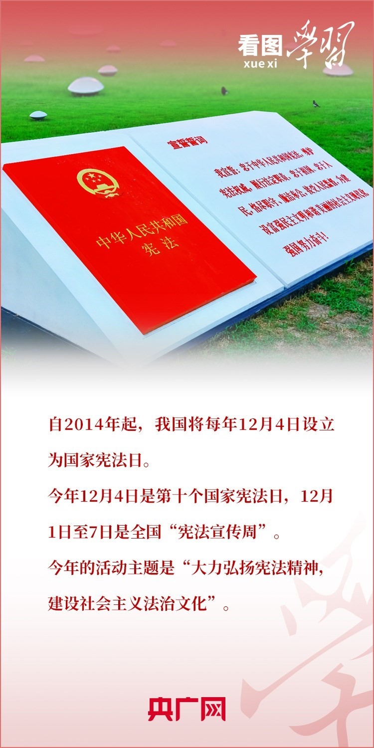 憲法是國家的根本法,是黨和人民意志的集中體現(xiàn)。尊崇憲法、學(xué)習(xí)憲法、遵守憲法、維護憲法、運用憲法,是每個公民的義務(wù)。在第十個國家憲法日(12月4日)來臨之際,《看圖學(xué)習(xí)》欄目為您梳理習(xí)近平總書記關(guān)于憲法的重要論述。一起來學(xué)習(xí)!
