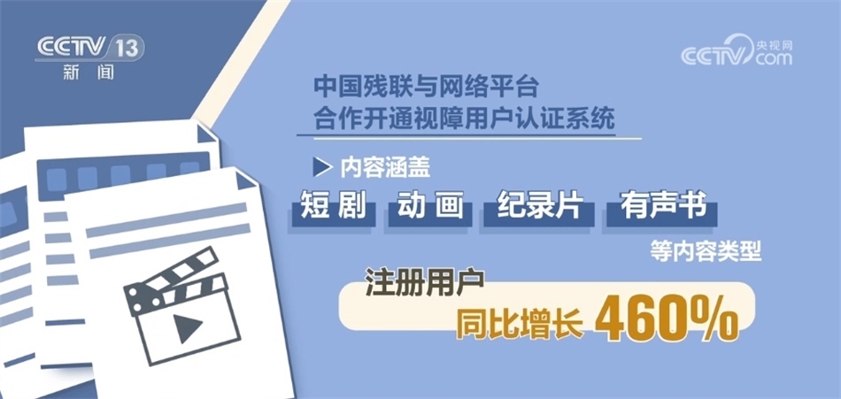 數(shù)據(jù)顯示,中國殘聯(lián)與網(wǎng)絡平臺合作開通視障用戶認證系統(tǒng)一年以來,無障礙影視作品已超2000部(集),同比增長超400%,內(nèi)容涵蓋短劇、動畫、紀錄片、有聲書等內(nèi)容類型,注冊用戶同比增長460%。