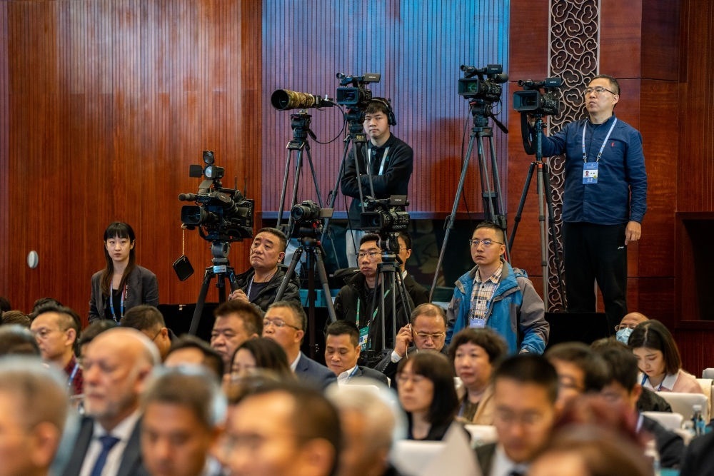 2023年12月5日,記者在云南昆明采訪第五屆世界媒體峰會(huì)(云南分會(huì)場(chǎng))暨第二屆大象國(guó)際傳播論壇開(kāi)幕式。新華社記者 胡超 攝