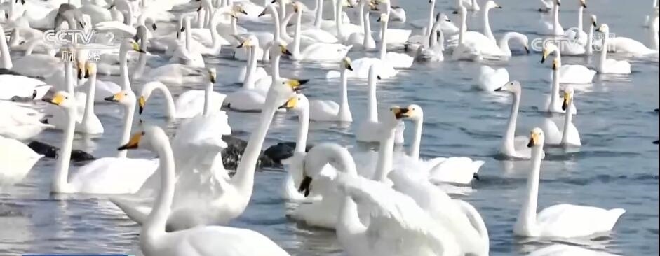 總臺記者 柳棟:我所在的位置是山東榮成大天鵝國家級自然保護區(qū),多年來這里形成了煙墩角、天鵝湖和櫻花湖三處大天鵝的集中區(qū)。今年遷徙的1萬多只大天鵝,目前九成以上已經(jīng)抵達這里,僅我所在的保護區(qū)范圍里就有超過6000多只。這里的工作人員告訴我,這些大天鵝是從3000多公里外的西伯利亞等地區(qū)長途飛行45天左右才能抵達的。飛抵后,大天鵝會在這里越冬,直到來年三四月份才會離開。因此,這里的大天鵝不再忙于練習飛翔和補充體力,而是從容不迫地開啟了度假模式,游客們也可以近距離與它們進行互動。