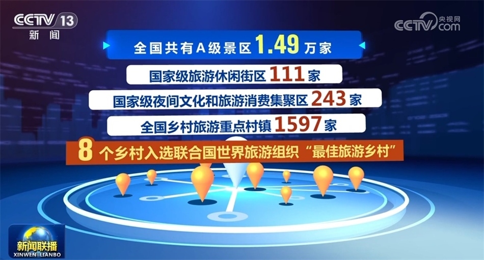 豐富優(yōu)質(zhì)旅游產(chǎn)品供給。目前全國共有A級景區(qū)1.49萬家,國家級旅游休閑街區(qū)111家,國家級夜間文化和旅游消費集聚區(qū)243家,全國鄉(xiāng)村旅游重點村鎮(zhèn)1597家,8個鄉(xiāng)村入選聯(lián)合國世界旅游組織“最佳旅游鄉(xiāng)村”,成為文化和旅游賦能鄉(xiāng)村振興典型案例。