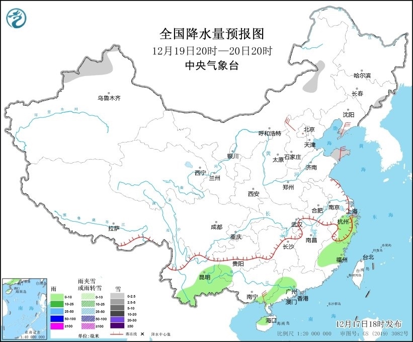 圖6 全國降水量預報圖(12月19日20時-20日20時)