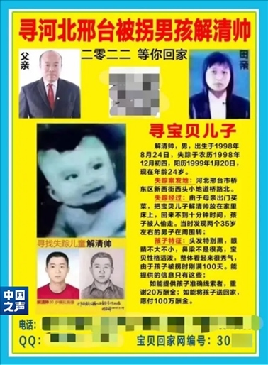 那是尋子25年的第一年。第一時(shí)間報(bào)警、發(fā)動(dòng)親友尋找,能想到的措施,解克鋒都用了。邢臺(tái)周邊、北京、河南,騎自行車、摩托車、坐火車,有一絲希望的地方,夫妻倆都去過。“盡快找到孩子吧,再耽誤下去,孩子長(zhǎng)大變了模樣,從眼前走過也認(rèn)不出了”, 這是一個(gè)父親最深的恐懼。