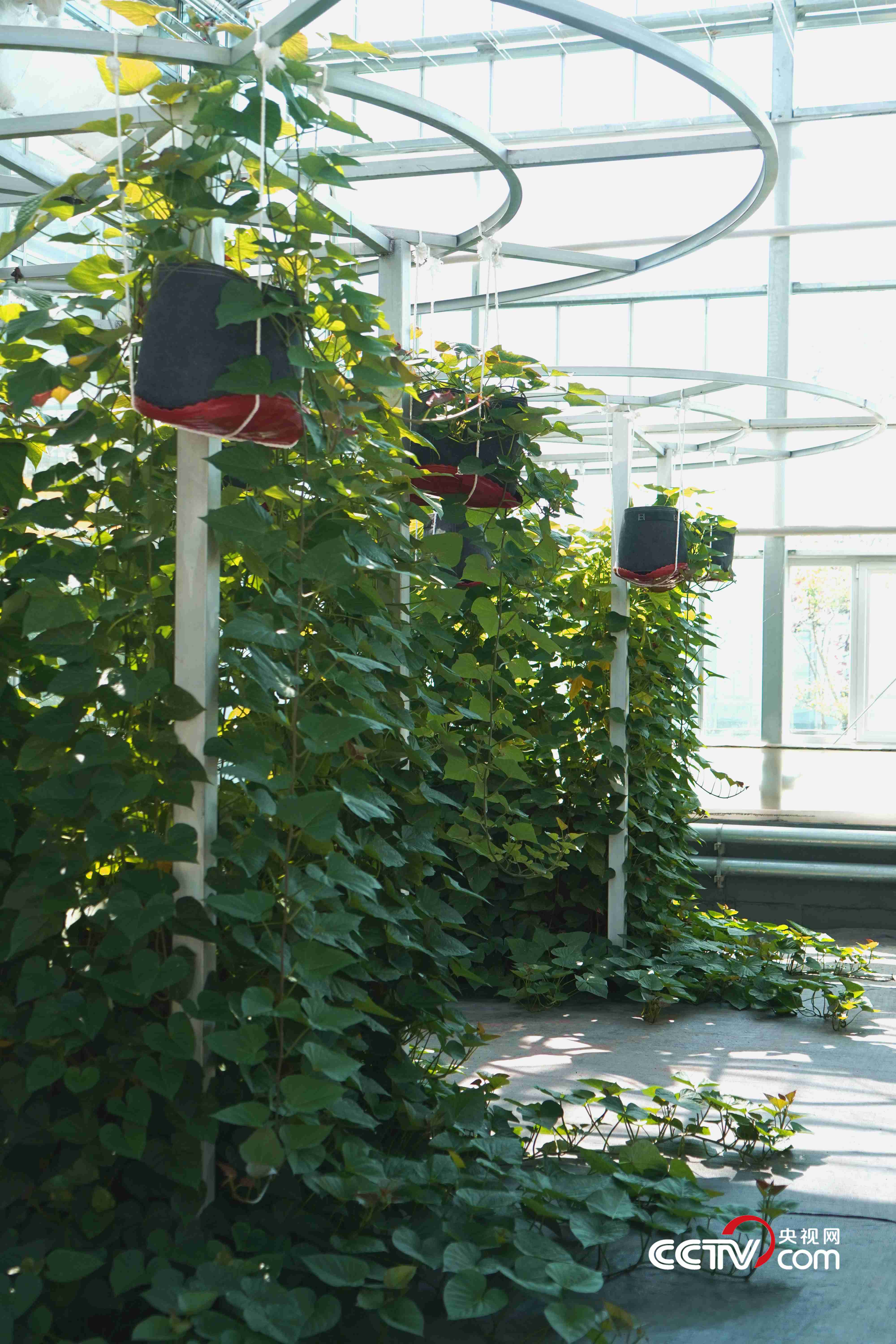 空中紅薯則利用深液流栽培模式,將紅薯由傳統(tǒng)的土壤栽培轉(zhuǎn)變?yōu)樗耘嗟哪J?。陸璐表示,其特點(diǎn)體現(xiàn)在水生根系能為植株提供充足的水肥,壓蔓產(chǎn)生的不定根成為儲(chǔ)藏根,實(shí)現(xiàn)了根系的分工合作,能夠達(dá)到一年種植多年采收的效果?!皳?jù)測算,單株冠幅在60平方米的‘紅薯樹’一年可產(chǎn)1200多斤的紅薯。”這種栽培模式不僅能帶來經(jīng)濟(jì)效益,在農(nóng)業(yè)觀光、科普教育方面也有獨(dú)特價(jià)值。