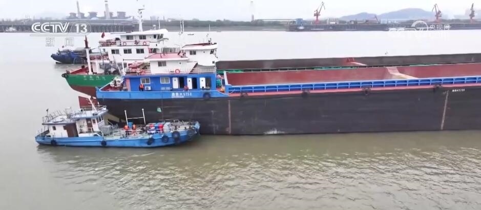 您看,這會在江面上不少大貨船旁都有一艘小船緊挨著它,這艘小船是污染物集中接收船,就相當(dāng)于長江上的“垃圾回收站”,連接兩艘船的管道后,船上生活污水即可被回收到接收裝置中。您看,我手里這杯清澈的水就是集中處理后的污水,目前達(dá)到了一級A類的標(biāo)準(zhǔn),也將會被重新直排回長江。?