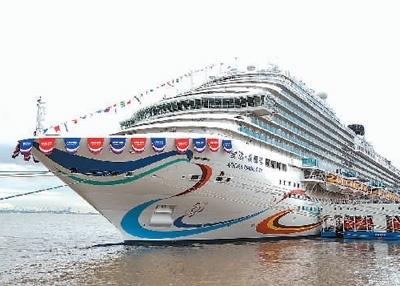12月24日,首艘國產(chǎn)大型郵輪“愛達·魔都號”在上海寶山吳淞口國際郵輪港離港進行首次試運營。