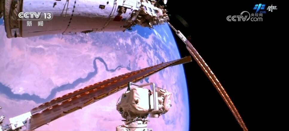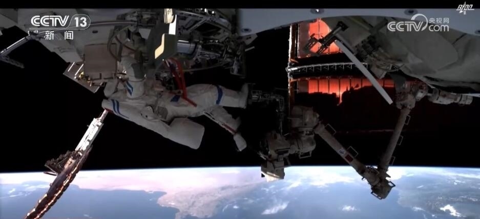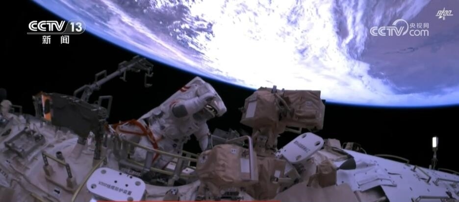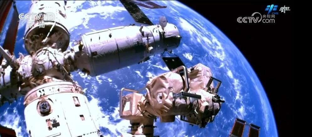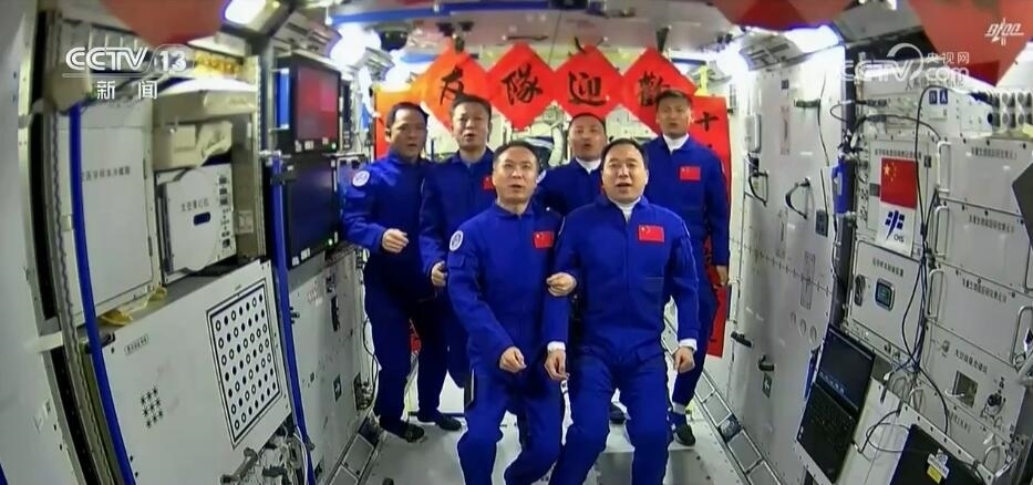 2023年10月26日19時34分,神舟十六號航天員乘組打開“家門”,歡迎神舟十七號航天員湯洪波、唐勝杰、江新林入駐“天宮”。兩個乘組在軌共同生活了約5天后,神舟十六號航天員在返回地球途中,還完成了此次飛行任務最后一項工作,首次拍攝了以地球為背景的中國空間站全景高清照片。