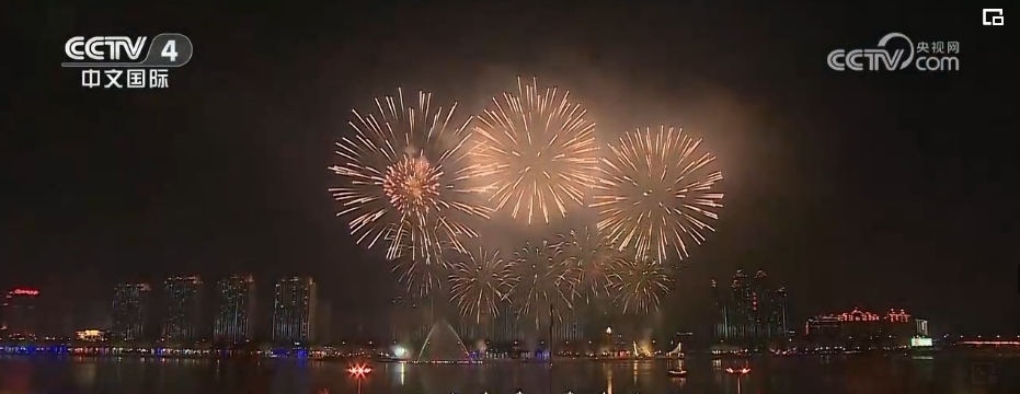 在吉林省吉林市,當(dāng)?shù)嘏e辦了大型煙花秀,一簇簇寓意著幸福安康、歡樂祥和的禮花騰空而上,點亮了松花江畔的夜空。
